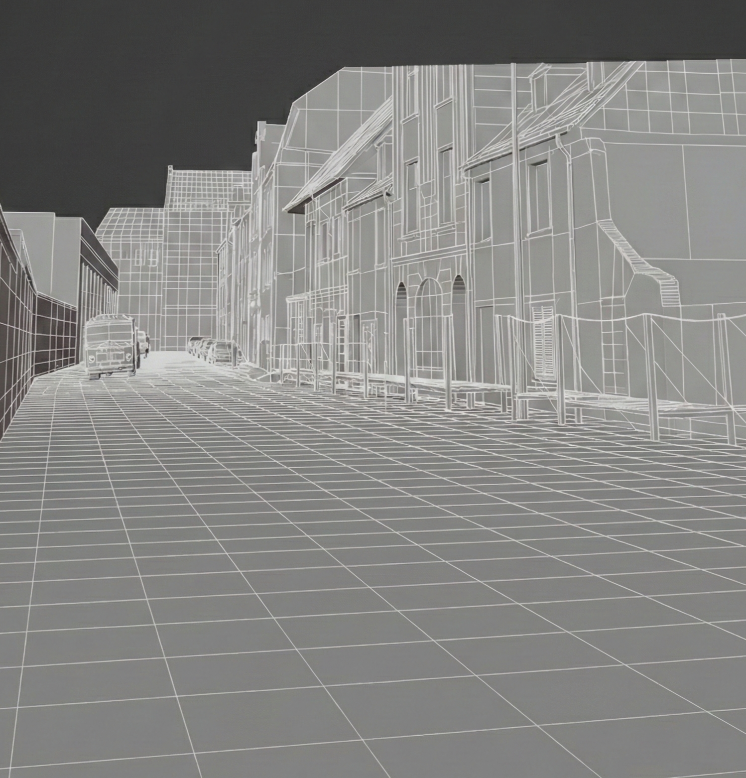 Zugasse 27-29, 50678 Köln Hochwasser 1983 (Machine Learning Wireframe 3-D Modell)
